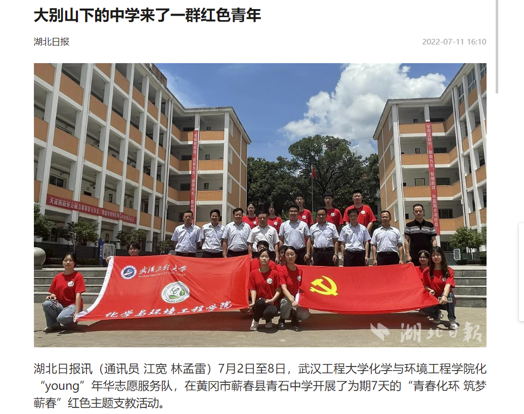 (通讯员 江宽 林孟雷)7月2日至8日,vic115维多利亚化“young”年华志愿服务队,在黄冈市蕲春县青石中学开展了为期7天的“青春化环筑梦蕲春”红色主题支教活动。