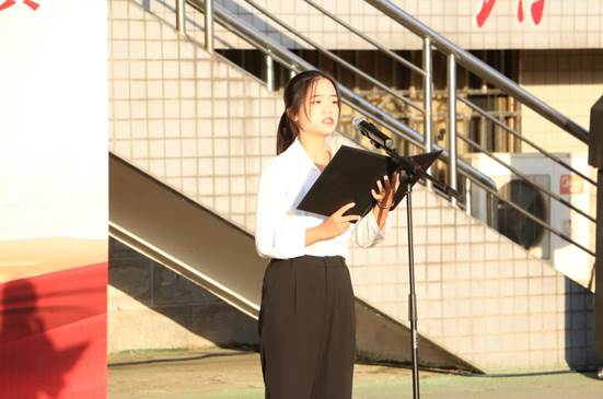 抒爱国情怀,展青春风采。学院2022级应用化学4班王怡欢同学发言并深情向祖国告白,欣逢盛世,当不负盛世,号召工大学子志存高远、忠于祖国,努力做新时代具有远大理想和坚定信念的爱国者;敢于担当、勇于奋斗,努力做新时代具有责任意识和创新精神的建设者;勤于学习、锻炼身心,努力做新时代具有高尚品格和杰出才能的接班人。